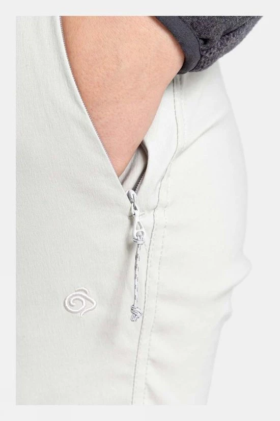 Craghoppers Kiwi Pro II Crop Pants are a spring and summer adventure favourite and are the perfect length for the milder months. The superb sun-protective stretch fabric is insect bite-proof and features EcoShield plant-based water-repellent for splashproof coverage. The pants feature three zipped pockets and a sunglasses wipe for on the go practicality.